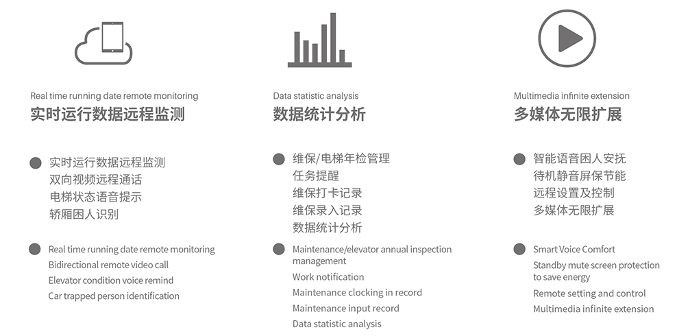 實際上,很多品牌電梯,一般都不會出現(xiàn)電梯困人聯(lián)系不上外部救援的情況。就西尼而言,在別墅電梯功能配置中,除了標配的“一鍵救援”、“緊急救援電話呼叫”,就算突然停電,還有“備用電源”和“停電應(yīng)急平層開門裝置”保障家人安全。另外,為了增強視聽體驗和更高的安全指數(shù),客戶還可選擇SYNEY多媒體物聯(lián)網(wǎng)功能,該選項不僅可以通過手機、Ipad、筆記本電腦等遠程設(shè)置播放內(nèi)容和控制電梯運行,同時還提供“雙向遠程視頻通話”、“轎廂困人自動識別”、“維保和年檢管理”、“實時運行數(shù)據(jù)遠程監(jiān)測”等增值安全功能。