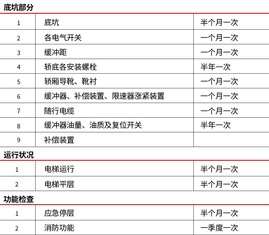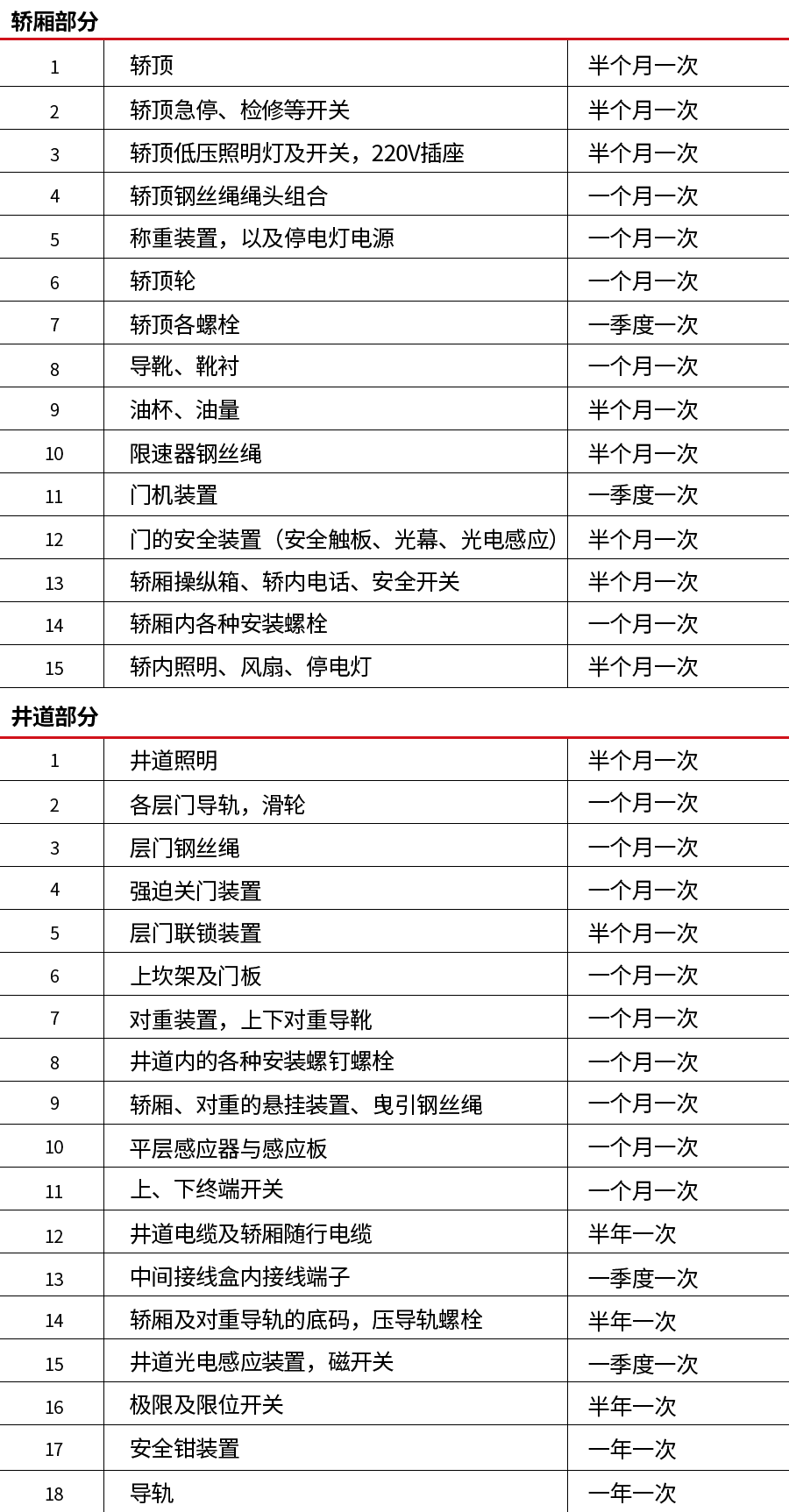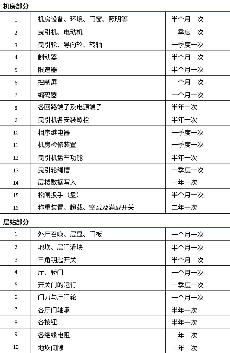 例如對于電梯非常重要的制動器(相當于汽車剎車)則必須15天維保一次。