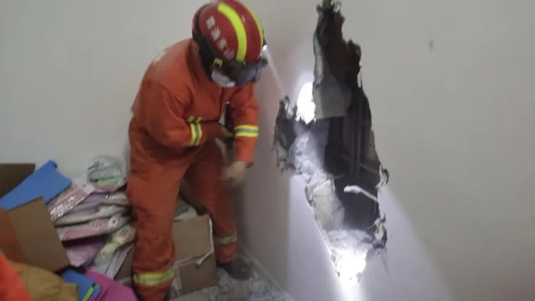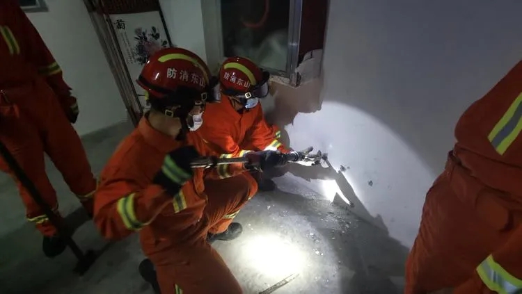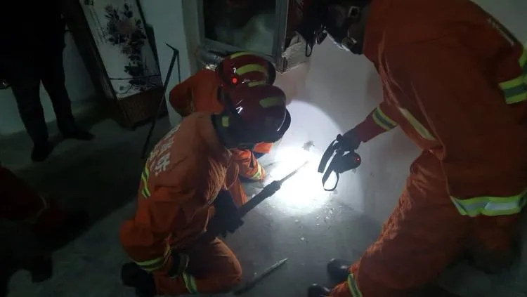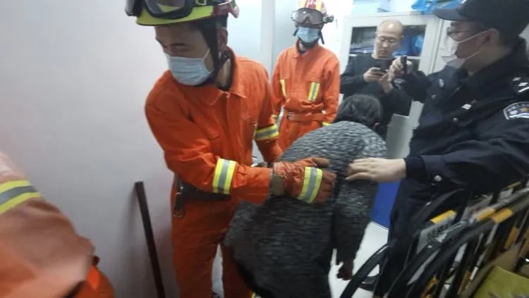 3、消防救援人員經(jīng)過30多分鐘的緊急破拆出營救出口,次日凌晨1時(shí)許將7名被困人員依次救出,并移交120。